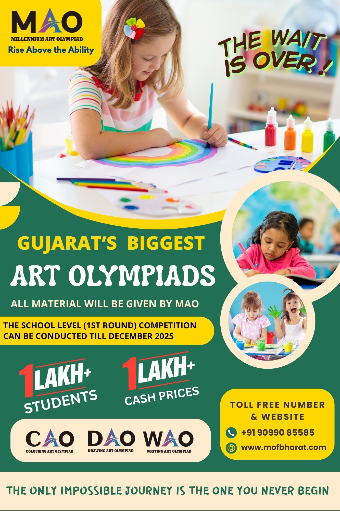 MAO is not just a competition—it is a celebration of ideas, expression, and talent. With two levels of participation (School & State), students gain recognition and encouragement from renowned artists and educators, empowering them to dream beyond classrooms.
